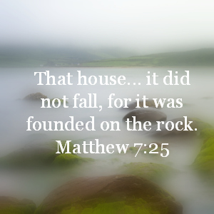 The rain descended, the floods came, and the winds blew and beat on that house; and it did not fall, for it was founded on the rock. — Matthew 7:25